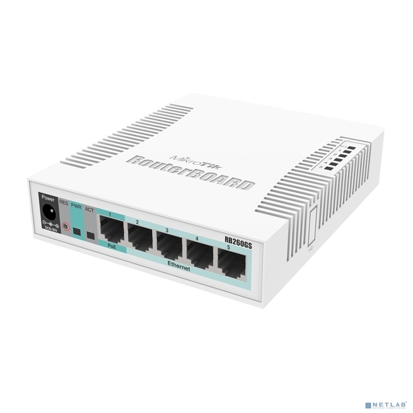 Управляемый коммутатор для рабочих групп MikroTik RB260GS with 5 Gigabit ports and SFP cage, SwOS, plastic case, PSU