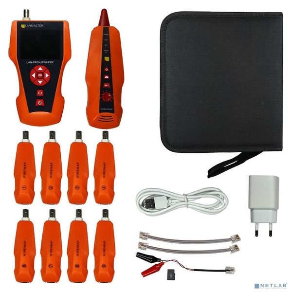 Кабельный тестер с измерением длины с трассировкой кабельных линий и определением POE в комплекте с 8 ответными частями