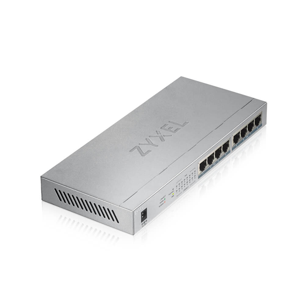 Zyxel GS1008HP, 8xGE PoE+, настольный, металлический, бесшумный, бюджет PoE 60Вт