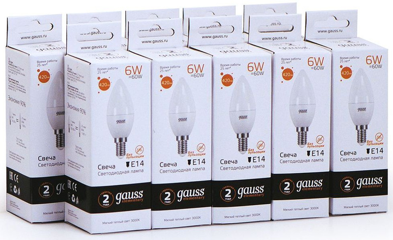 - Светодиодная лампа Gauss - безопасный для здоровья и окружающей среды источник света. Она не пульсирует, мгновенно включается, не содержит ртути и имеет больший срок службы, чем лампы накаливания и КЛЛ, экономичнее ламп накаливания до 10 раз.