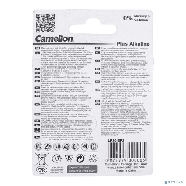 Camelion..LR20 Plus Alkaline BL-2 (LR20-BP2, батарейка,1.5В) купить в интернет-магазине TPShop.Ru. Наличный и безналичный расчет, розничные и оптовые продажи. Самовывоз, доставка по Москве и МО, отправка во все регионы России.