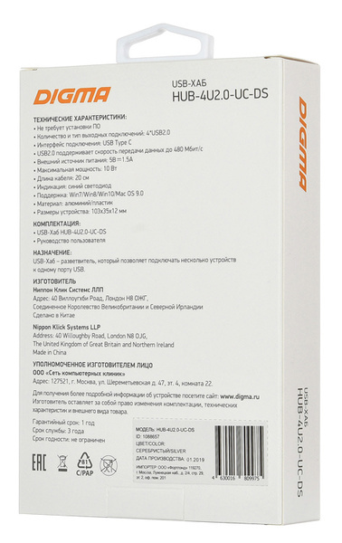 Разветвитель USB-C Digma HUB-4U2.0-UC-DS 4порт. серебристый купить в интернет-магазине TPShop.Ru. Наличный и безналичный расчет, розничные и оптовые продажи. Самовывоз, доставка по Москве и МО, отправка во все регионы России.