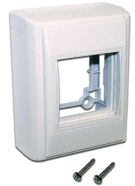 - Настенная коробка предназначена для организации телекоммуникационных розеток, а также установки силовых электрических розеток, или любых других механизмов произведенных под французский стандарт Mosaic 45x45
