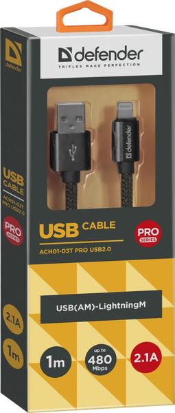 Кабель LIGHTNING TO USB2 1M BLACK ACH01-03T 87808 DEFENDER