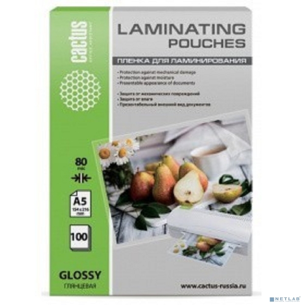 Пленка для ламинирования Cactus 80мкм A5 (100шт) глянцевая 154x216мм CS-LPGA580100 купить в интернет-магазине TPShop.Ru. Наличный и безналичный расчет, розничные и оптовые продажи. Самовывоз, доставка по Москве и МО, отправка во все регионы России.