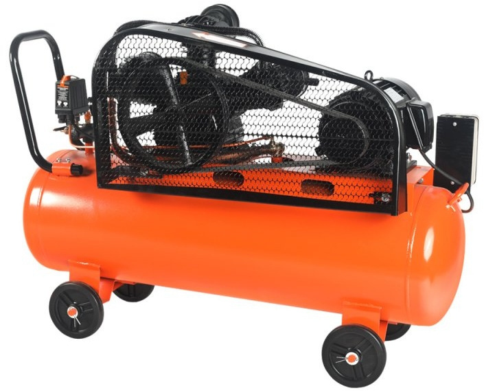 - Трехцилиндровый компрессор с ременной передачей. Увеличенной производительности. Применяется для сервисных; ремонтных работ в гараже; на шиномонтаже и автосервисе.