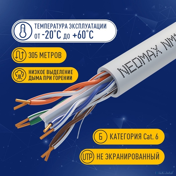 NEOMAX NM10611 Кабель UTP cat.6 4 пары (305 м) 0.57мм Taiwan LSZH Медь