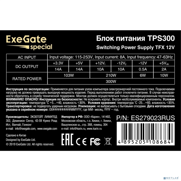 Блок питания Exegate ES279023RUS купить в интернет-магазине TPShop.Ru. Наличный и безналичный расчет, розничные и оптовые продажи. Самовывоз, доставка по Москве и МО, отправка во все регионы России.