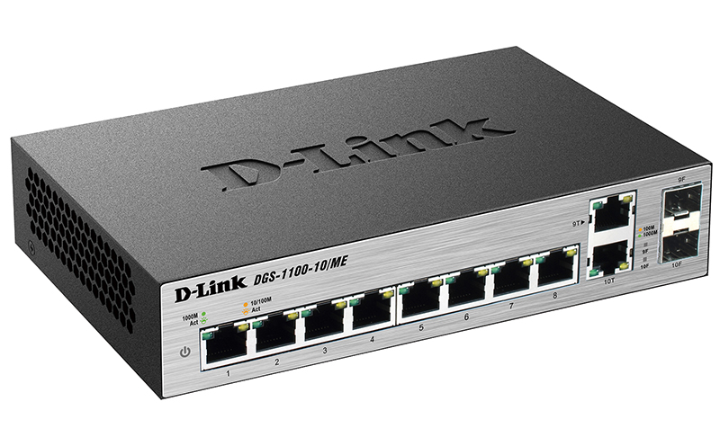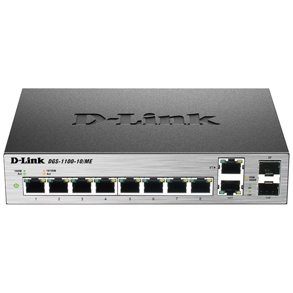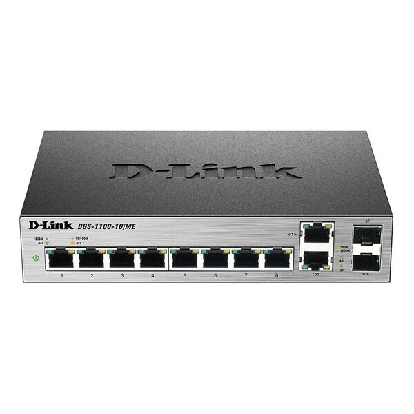 D-Link DGS-1100-10 / ME / A2A, 8-Port 10 / 100 / 1000Base-T ports + 2 combo 100 / 1000Base-T / SFP ports Metro Ethernet Switch