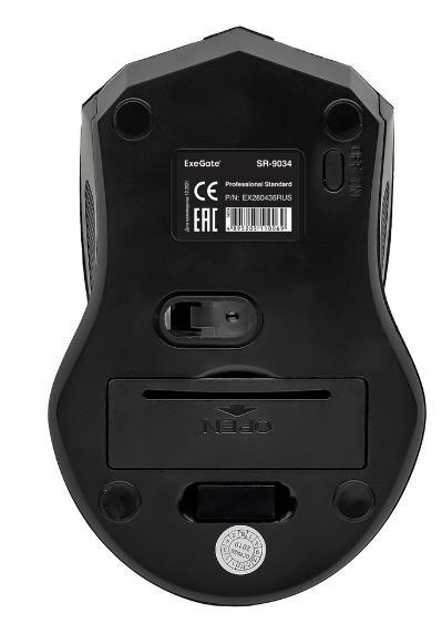Exegate EX280436RUS Беспроводная мышь Exegate SR-9034 <black, optical, 4btn/scroll, 1600dpi, USB> Color box