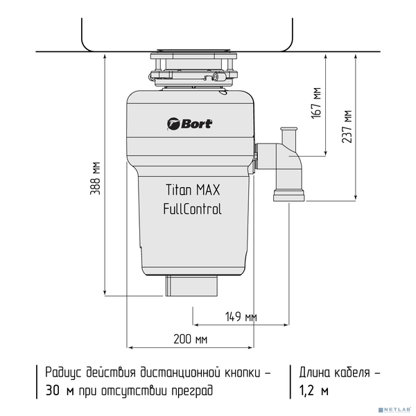 Bort Измельчитель пищевых отходов TITAN MAX Power {Мощность л.с. 1 ; Мощность 780 Вт; Производительность 5,2 кг/мин; Скорость холостого хода 3500 об/мин; Объем камеры 1400 мл; Металл ; набор аксессуар