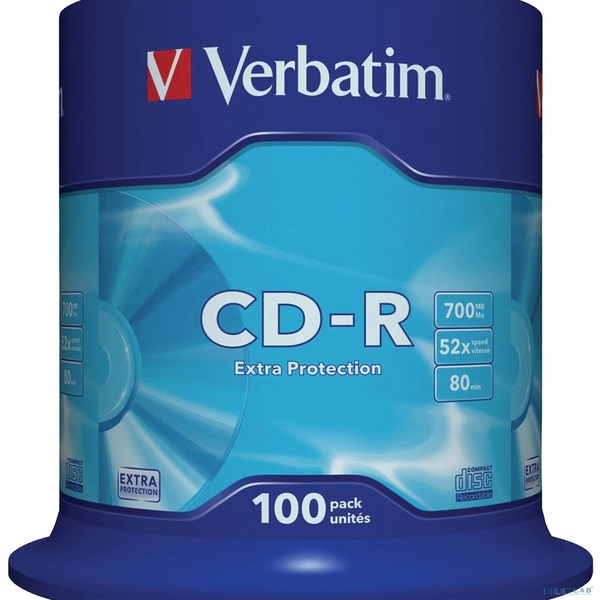 Диск CD-R 700МБ 52x Verbatim 43411 80min пласт.коробка, на шпинделе (100шт. / уп.)