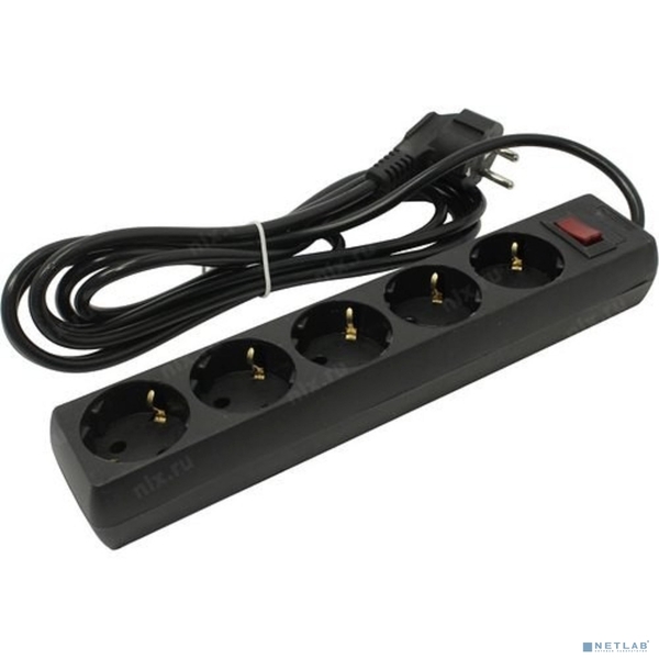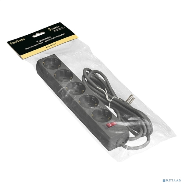 Exegate EX279357RUS Удлинитель ExeGate EC-5-3B (5 розеток, 3м, евровилка, черный)