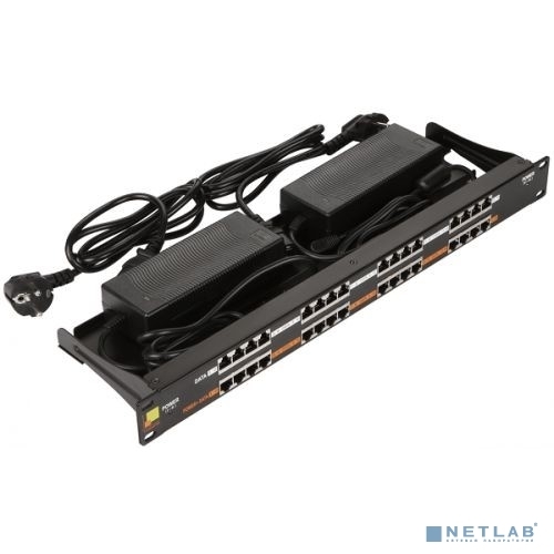 Панель POE 19", 16 портов, с двумя блоками питания 48V, 120W
