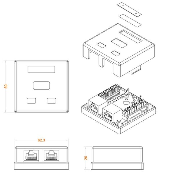 - Розетка компьютерная (лицевая панель и модуль подключения)