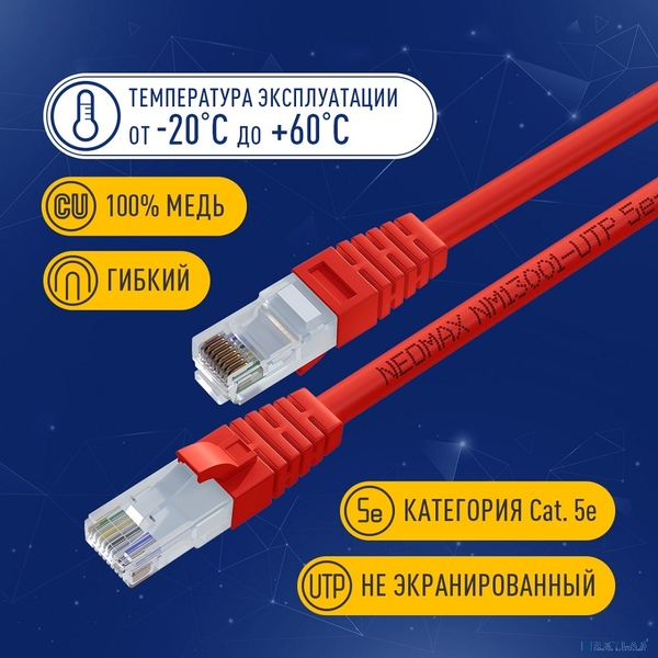 Патчкорд NEOMAX (NM13001-050R) Шнур коммут. UTP 5 м, cat.5е - красный, многожильный купить в интернет-магазине TPShop.Ru. Наличный и безналичный расчет, розничные и оптовые продажи. Самовывоз, доставка по Москве и МО, отправка во все регионы России.