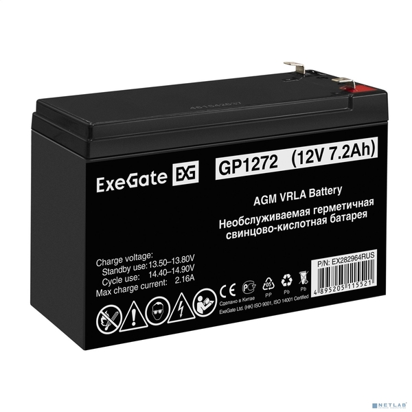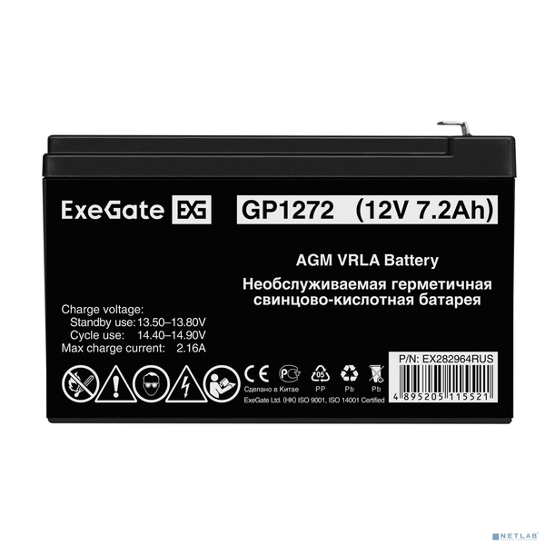 Аккумуляторная батарея Exegate EX282964RUS Exegate EX282964RUS Аккумуляторная батарея ExeGate GP1272 (12V 7.2Ah), клеммы F2