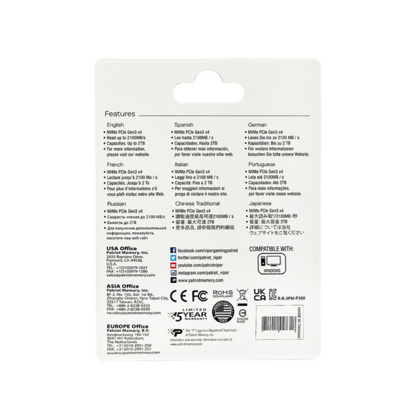 SSD жесткий диск M.2 2280 256GB QLC P300P256GM28 PATRIOT купить в интернет-магазине TPShop.Ru. Наличный и безналичный расчет, розничные и оптовые продажи. Самовывоз, доставка по Москве и МО, отправка во все регионы России.