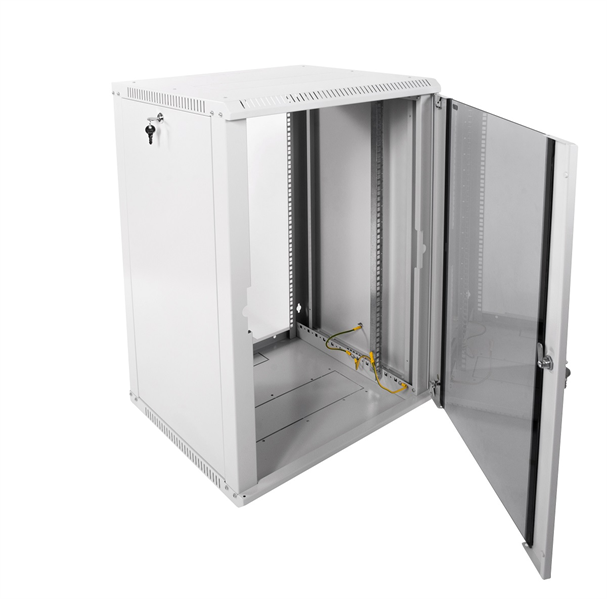 Напольный шкаф Rexant RAL 7035 19" 27U 600×600×1387 (ШxГxВ), дверь стекло, металлическая задняя дверь, боковые съемные стенки