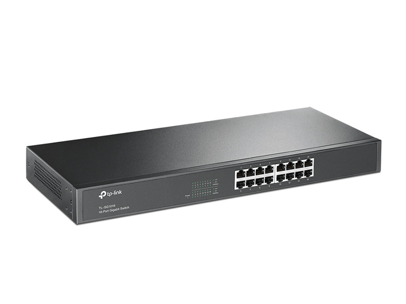 Сетевое оборудование TP-Link TL-SG1016, 16-портовый гигабитный коммутатор, 16 портов RJ45 10 / 100 / 1000 Мбит / с, 1U 19-дюймовый монтируемый в стойку стальной корпус
