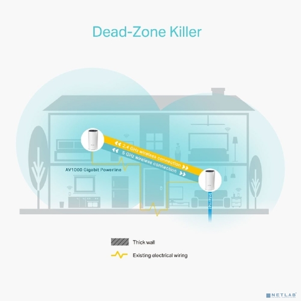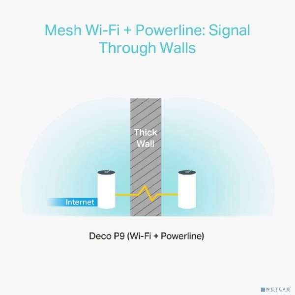 Домашняя Mesh Wi-Fi система TP-Link Deco P9 (2-pack) AC1200, 2 устройства, до 300 Мбит / с на 2, 4 ГГц + до 867 Мбит / с на 5 ГГц + Powerline до 1000 Мбит / с, 2 встр. антенны, 2 гиг. порта (WAN / LAN)