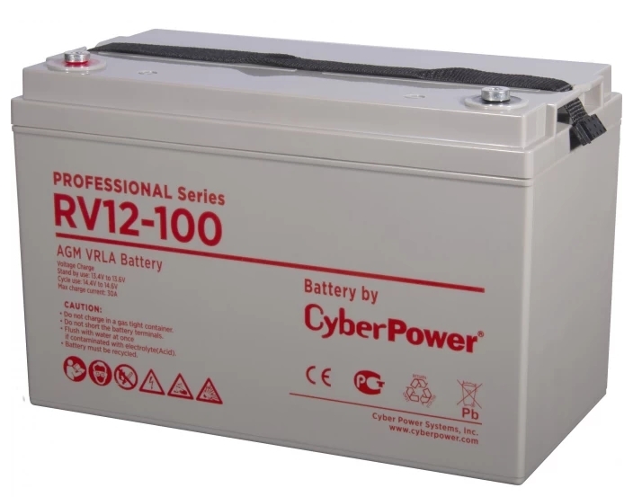 - CyberPower AGM battery for UPS, RV 12-100 / 12 V 100 Ah, М8, 330х174х212mm., Height with terminals 220mm, 31,8kg., 10-year service life