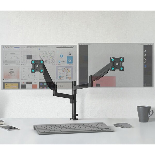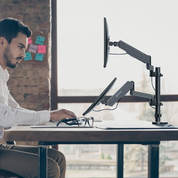 Кронштейн для 2-х мониторов ONKRON/ 13-32" макс. 100*100, струбцина, наклон -35?+35? поворот 360?, перемещение по вертикали 0-600мм, кабель-канал, пружина, нагрузка 2х1-8кг