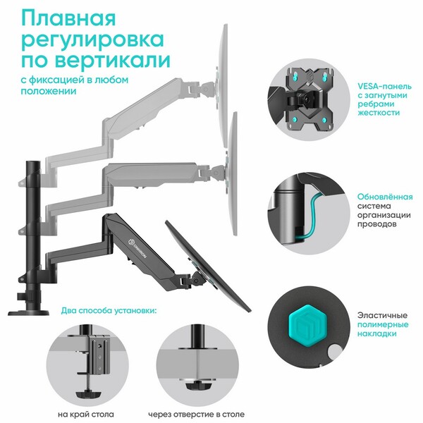Кронштейн для 2-х мониторов ONKRON/ 13-32" макс. 100*100, струбцина, наклон -35?+35? поворот 360?, перемещение по вертикали 0-600мм, кабель-канал, пружина, нагрузка 2х1-8кг купить в интернет-магазине TPShop.Ru. Наличный и безналичный расчет, розничные и оптовые продажи. Самовывоз, доставка по Москве и МО, отправка во все регионы России.