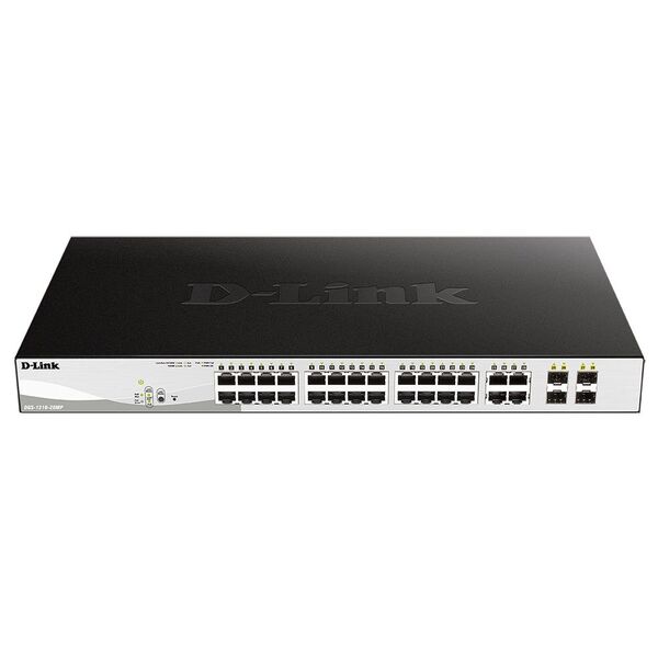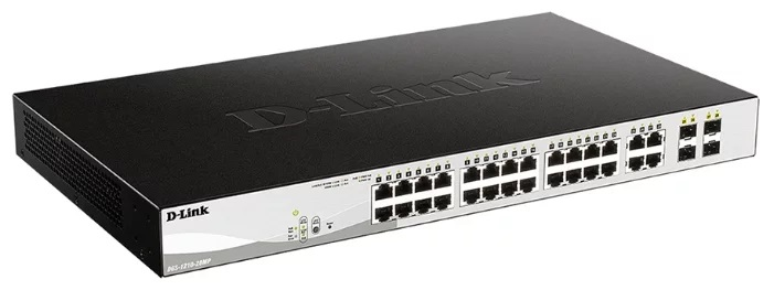 Управляемый коммутатор для рабочих групп D-Link DGS-1210-28MP/FL1A, L2 Managed Switch with 24 10/100/1000Base-T ports and 4 100/1000Base-T/SFP combo-ports (24 PoE ports 802.3af/802.3at (30 W), PoE Budget 370 W).8K Mac address, 802.3x Flow C