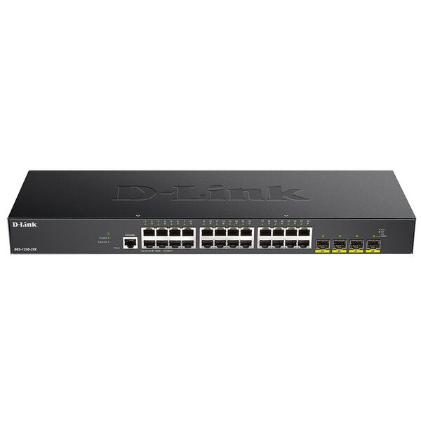 D-Link DGS-1250-28X / A1A, L2 Smart Switch with 24 10 / 100 / 1000Base-T ports and 4 10GBase-X SFP+ ports.16K Mac address, 802.3x Flow Control, 4K of 802.1Q VLAN, 4 IP Interface, 802.1p Priority Queues