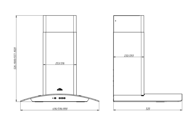 - Ширина вытяжки, мм