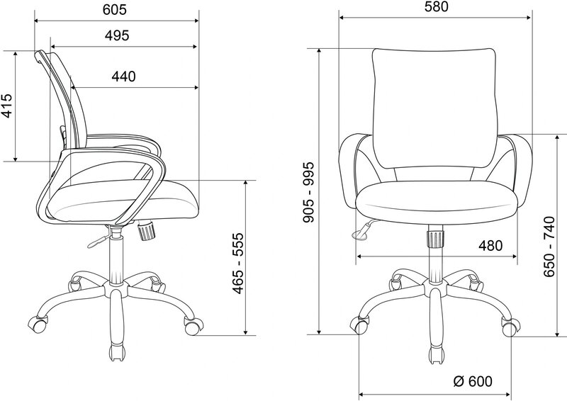 - Высота кресла / стула MIN