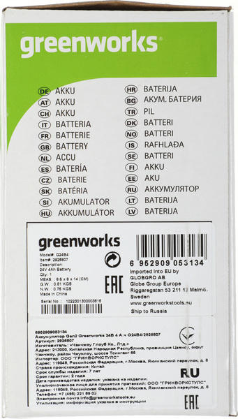 Аккумулятор Greenworks G24B4, 24V, 4А.ч 2926807