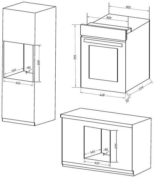 Духовой шкаф встраиваемый полноразмерный, 60 см, 9 режимов, объем духовки 70л, утапливаемые переключатели, большой дисплей Snow White, хромированные боковые решетки, телескопические направляющие 1 уровнь, панель управления - белое стекло, универсальный противень, решетка-гриль, тройное стекло дверцы, легко-съемное большое внутреннее стекло Full Glass, защитное отключение, охлаждающий вентилятор, электронный таймер 9 часов, 595х575х595 мм.