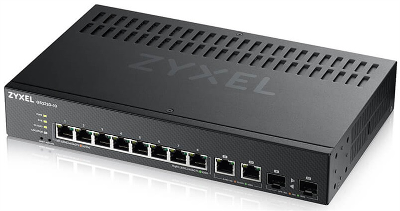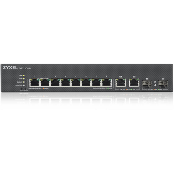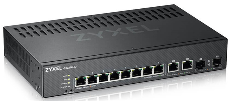 Zyxel NebulaFlex Pro GS2220-10 Hybrid L2 Switch, rack 19 ", 8xGE, 2xCombo (SFP / RJ-45), silent, standalone / cloud management