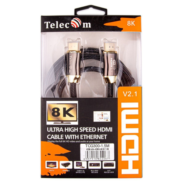 Кабель HDMI 19M/M,ver. 2.1, 8K@60 Hz 1m метал разъемы, нейлоновая оплетка Telecom <TCG300-1M> купить в интернет-магазине TPShop.Ru. Наличный и безналичный расчет, розничные и оптовые продажи. Самовывоз, доставка по Москве и МО, отправка во все регионы России.