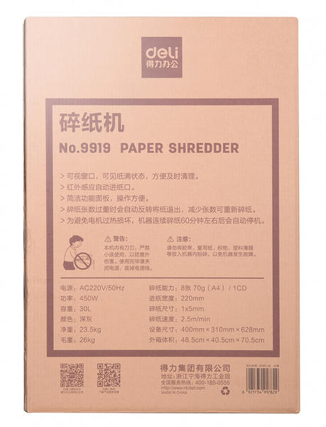 Уничтожитель бумаг Шредер Deli 9919 (секр.P-7)/фрагменты/8лист./30лтр./скрепки/скобы/пл.карты/CD купить в интернет-магазине TPShop.Ru. Наличный и безналичный расчет, розничные и оптовые продажи. Самовывоз, доставка по Москве и МО, отправка во все регионы России.