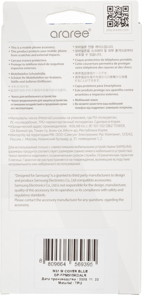 Чехол (клип-кейс) Samsung для Samsung Galaxy M51 araree M cover синий (GP-FPM515KDALR) купить в интернет-магазине TPShop.Ru. Наличный и безналичный расчет, розничные и оптовые продажи. Самовывоз, доставка по Москве и МО, отправка во все регионы России.