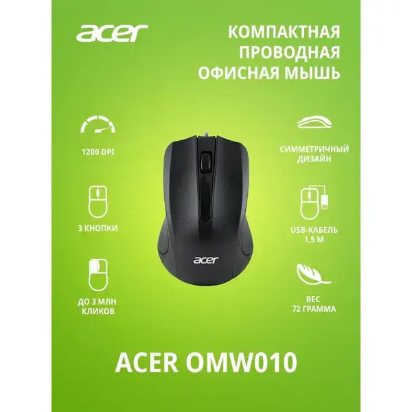 Мышь Acer OMW010 черный оптическая (1200dpi) USB (3but) купить в интернет-магазине TPShop.Ru. Наличный и безналичный расчет, розничные и оптовые продажи. Самовывоз, доставка по Москве и МО, отправка во все регионы России.