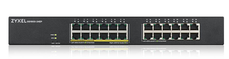 - Smart L2 PoE+ Zyxel GS1900-24EP, rack 19", 24xGE (12xPoE+), бюджет PoE 130 Вт