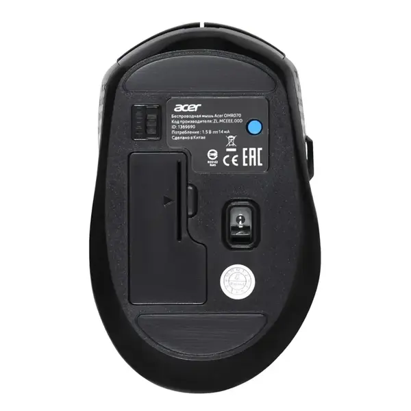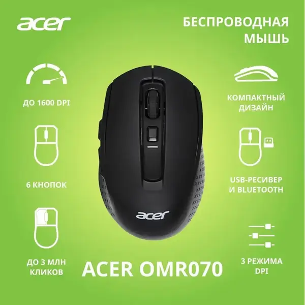 Acer OMR070 Мышь беспроводная оптическая BT / Radio USB (1600dpi) (8but) черный