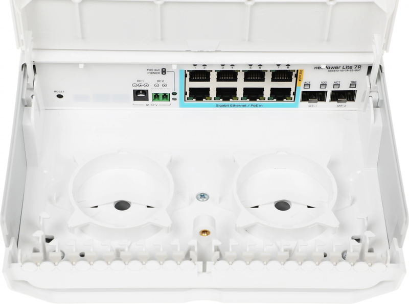 Управляемый коммутатор для рабочих групп MikroTik netPower Lite 7R with 8 x Gigabit Ethernet ports (7 with Reverse POE-in, 1 with PoE-OUT), 2 x SFP+ cages, SwitchOS, outdoor enclosure, mounting kit (power supply NOT included) купить в интернет-магазине TPShop.Ru. Наличный и безналичный расчет, розничные и оптовые продажи. Самовывоз, доставка по Москве и МО, отправка во все регионы России.