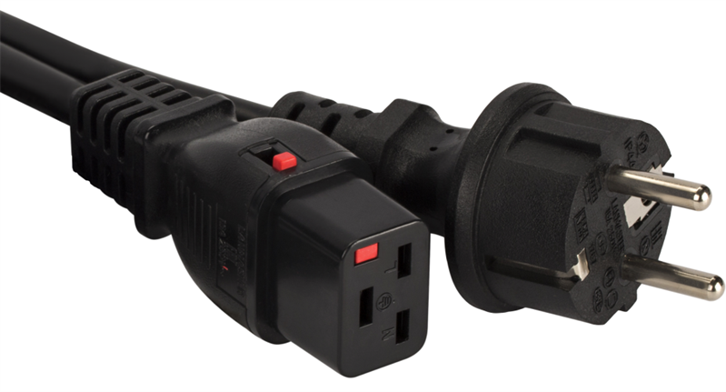 Шнур питания с блокировкой C19-Schuko прямая, 3х1.5, 220В, 16А, черный, 3 метра