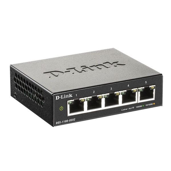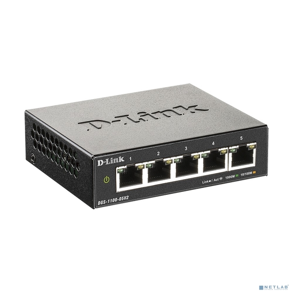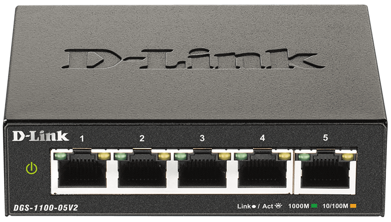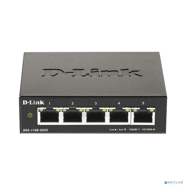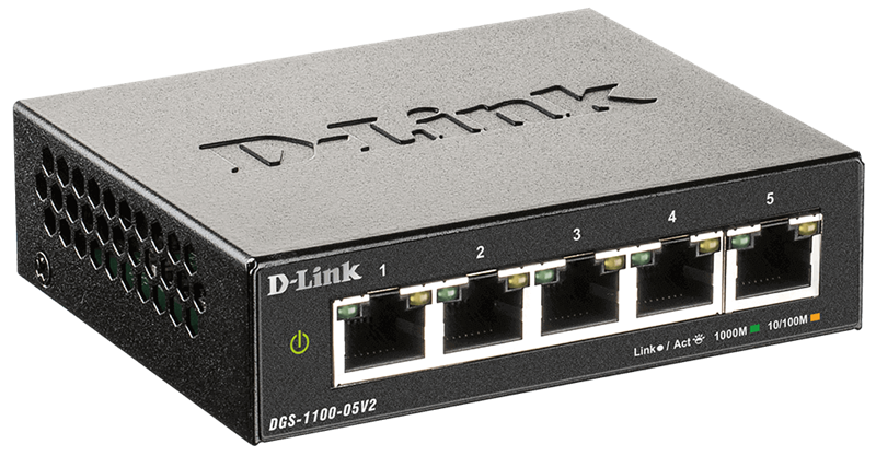 Управляемый коммутатор для рабочих групп D-Link DGS-1100-05V2/A1A, L2 Smart Switch with 5 10/100/1000Base-T ports.8K Mac address, 802.3x Flow Control, Port Trunking, Port Mirroring, IGMP Snooping, 32 of 802.1Q VLAN, VID range 1-4094, Loopba