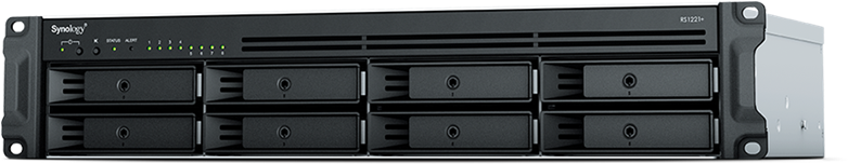 Synology RS1221+ Rack 2U, QC2.2GHzCPU / 4GbDDR4 (upto32) / RAID0, 1, 5, 6, 10 / upto 8 hot plug HDDs SATA (3, 5'or2, 5') (upto 12 with RX418) / 2xUSB3.2 / 1eSATA / iSCSI / 4xGbE (+1Expslot) / 2xIPcam (upto 40) / norail repl RS1219+
