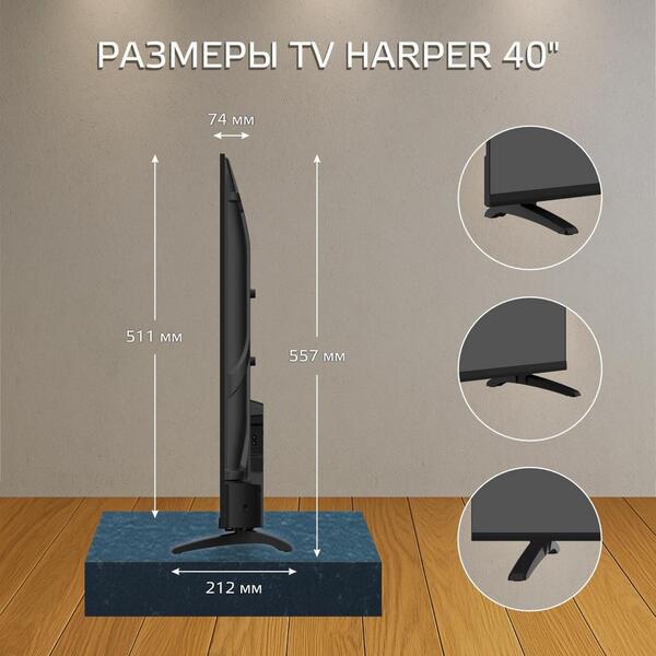 Телевизор HARPER 40F720TS {FULL HD (1920 x 1080); Наличие цифрового тюнера: T2/S2; Габариты упаковки (ШГВ): 1005x149x604; Объем, м3: 0,0898; Вес, кг: 7,345}