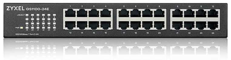 - Zyxel GS1100-24E, 24xGE, rack 19", бесшумный