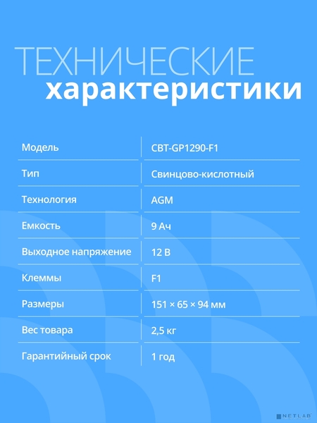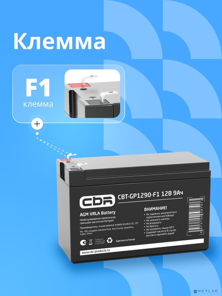 Аккумуляторная батарея CBR Батарея CBT-GP1290-F1 (12В 9Ач) F1 купить в интернет-магазине TPShop.Ru. Наличный и безналичный расчет, розничные и оптовые продажи. Самовывоз, доставка по Москве и МО, отправка во все регионы России.