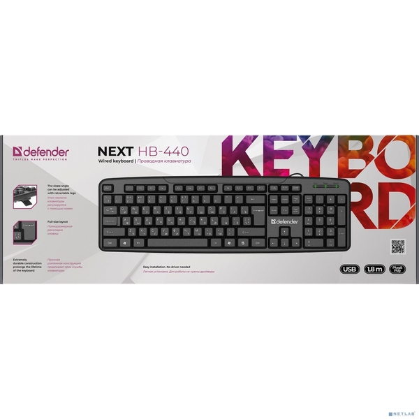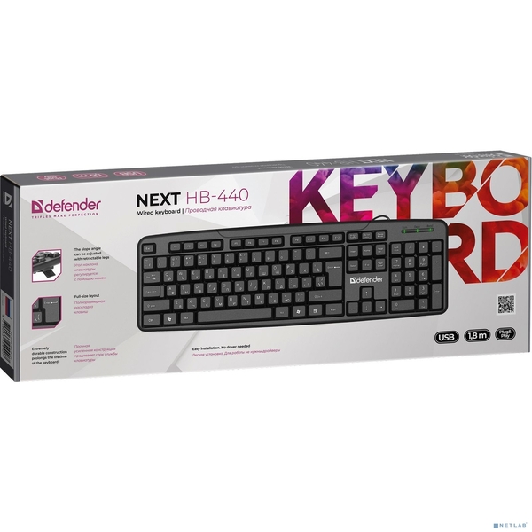 Клавиатура Defender Next HB-440 RU [45440] {Проводная клавиатура, полноразмерная, черная} купить в интернет-магазине TPShop.Ru. Наличный и безналичный расчет, розничные и оптовые продажи. Самовывоз, доставка по Москве и МО, отправка во все регионы России.