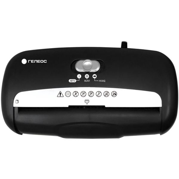 Уничтожитель бумаг Уничтожитель документов ГЕЛЕОС УД10-2, DIN P-2 (2 ур-нь секр.), полоса 5,8мм, 8 лист (70г/м2), пл.карты/скобы, 10 литров